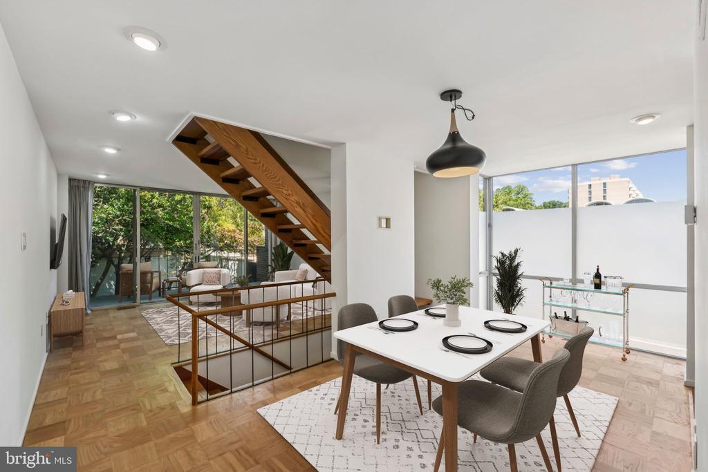 This beautifully maintained barrel-roof END UNIT townhome offers a three-level, three-bedroom + bonus room, and two-bath oasis in the celebrated River Park community of Southwest DC. Designed by Charles Goodman, the residence showcases his signature mid-century modern style while blending seamlessly with modern updates.
