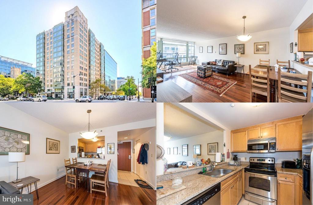 Perfectly located on the 13th floor with an amazing view of the Washington Monument on coveted K Street in the heart of downtown this condo delivers chic city living with all the modern luxuries homebuyers seek! Located in a secure luxury building with a spectacular roof top deck only steps from the area’s finest restaurants, shopping, parks, and nightlife, plus conveniently surrounded by 6 Metro stations, all the Metro lines right at your fingertips! ****** An upscale lobby with concierge, an open floor plan, panoramic views, high ceilings, floor to ceiling windows, beautiful hardwood flooring, an upgraded kitchen, and a warm neutral color palette create instant move-in appeal. A formal foyer welcomes you home, as earth toned tile flooring flows into the upgraded kitchen to the right where gleaming granite countertops, custom wood cabinets, and stainless steel appliances including a ceramic top range, and French door refrigerator with ice/water dispenser is sure to please. Rich hardwood floors introduce the dining area accented by an opening to the kitchen and chic fusion chandelier and flow into the spacious living room where a wall of floor to ceiling glass fills the space with natural light and overlooks bustling K Street with an incredible view of the Monument! Down the hall, you’ll find the generously sized light filled bedroom and the well-appointed bath with granite topped vanity and tub/shower with spa toned tile surround. A full sized stacked washer and dryer adds convenience, and water and sewer included in fee! ****** All this in an amenity filled building with a modest condo fee that includes a concierge, fitness center, meeting/party/billiard room, and an amazing roof top deck with grills and stunning 360 views of the city! Walk to luxury shopping at upscale City Center, and fabulous dining at Busboys and Poets, Yardbird, Zaytinya by Jose Andres, Nino’s Bakery and so much more! The best location in DC for getting around by foot, bike, bus, and Metro with access to all the Metro lines, just minutes to Capital One Arena, Convention Center, easy access to Dupont Circle, Georgetown, the National Mall and White House, and Capitol Hill. Experience all the myriad of benefits to living in the nation's capital, museums, theaters, endless historical sites, zoos, beautiful parkland, nightlife, and entertainment galore. It's the perfect home in an vibrant and unbeatable location!
