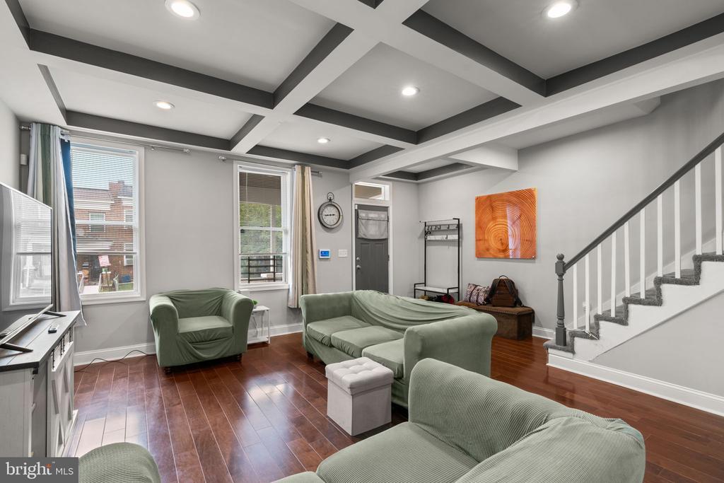 Welcome to 704 Mount Holly Street! This beautifully renovated home was fully updated in 2021 and offers over 2,000 sq. ft. of stylish living space across three finished levels. The main floor features an open-concept layout with stunning coffered ceilings, a spacious family room, and a show-stopping kitchen with 42" white cabinets, stainless steel appliances, a gas range, custom backsplash, and an oversized island with seating. Upstairs, the primary suite impresses with a spa-like bath and walk-in closet. Two additional bedrooms and a modern hall bath complete the upper level. The fully finished lower level provides flexible space for a second family room, home office, or fourth bedroom, plus a full bath and laundry area. Additional updates include new plumbing, electric, HVAC, bathrooms, windows, flooring, carpet, fixtures, roof, and more! This gem is truly move-in ready!