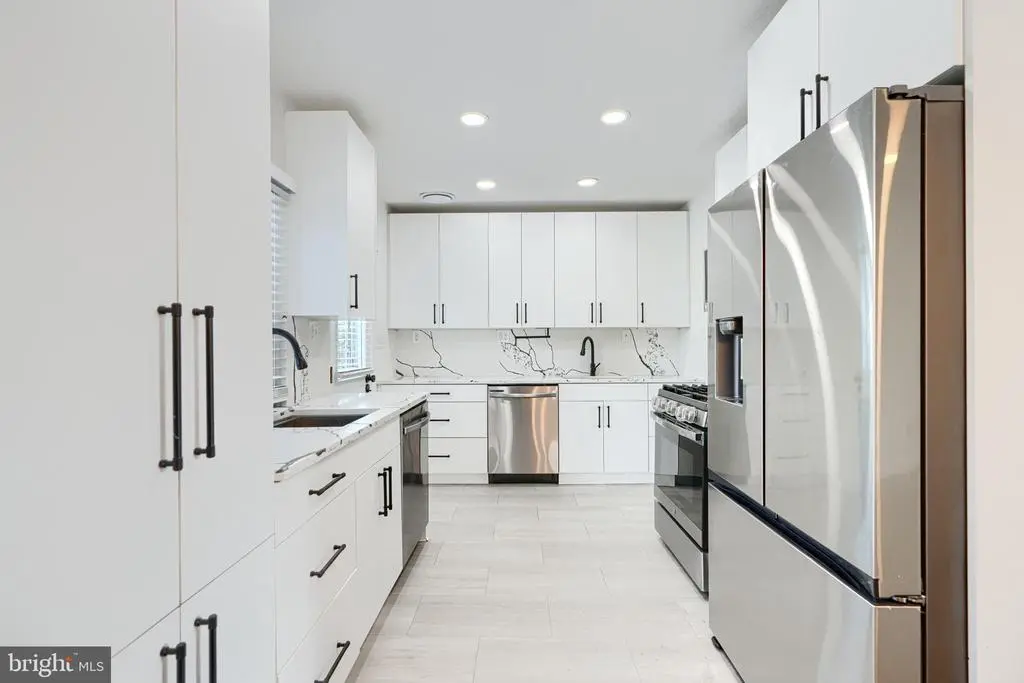 Welcome to your dream home featuring a designer kosher kitchen with double sinks, 2 dishwashers, modern soft-close cabinetry, quartz countertops and backsplash, and sleek stainless steel appliances. The main level is filled with natural light from large windows, complemented by gleaming hardwood floors that continue upstairs. Fresh white paint gives the home a bright and airy feel throughout. Upstairs, you'll find 3 bedrooms with ceiling fans and an updated bathroom offering both a separate walk-in shower and a shower/tub combo. The finished basement includes a large rec room, powder room, and storage space. Additional highlights include a new roof, carport, and a rear patio perfect for outdoor entertaining. Swingset is excluded from the sale.