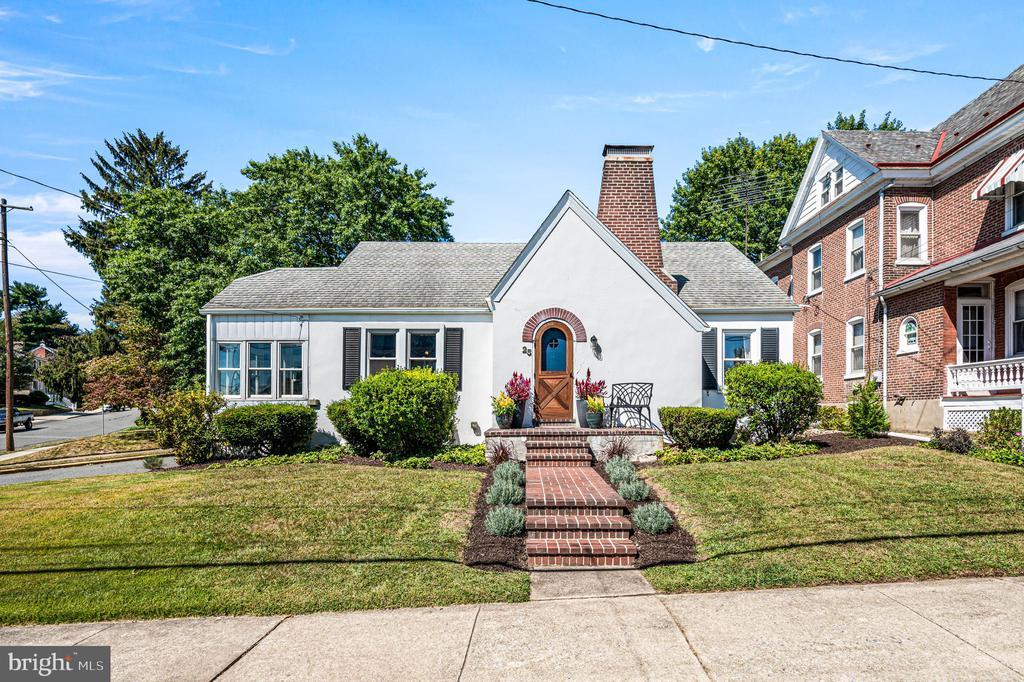 Located on one of the most picturesque streets in Boyertown, this inviting cape cod is rich in character and charm. The timeless architecture, beautiful curb appeal, and warm, welcoming interior create an atmosphere that immediately feels like home. Greet guests along a brick walkway leading to a vintage arched door entry. The main level features a spacious living Room with handsome brick fireplace, bright sun room side entry with colored interior glass transom, and charming kitchen and dining rooms. The Primary bedroom and full, beautifully renovated bathroom with high wainscoting, marble top vanity, and tilework tub/shower enclosure are also located on the ground floor. The second level features 2 additional bedrooms; one is a walkthrough and features a unique modern cable and wood railing. Gleaming wood flooring and period arched doorway openings are found throughout the updated home. Replacement windows, 200 Amp electrical service. Enjoy outdoor entertaining and recreation in the level backyard, and back porch area. The detached one car garage also features a large second porch – perfect for hanging out with friends. The unbeatable central location affords easy access to all that the great town of Boyertown has to offer: unique stores, cool eateries and coffee shops, an historic movie theater, community library, parks, upscale fruit market, Museum of Historic Vehicles and the ever-popular Colebrookdale tourist train line. Be sure not to miss this special Boyertown home.