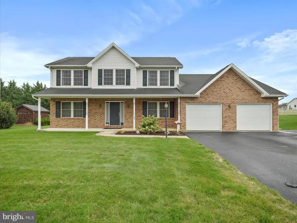 Welcome to this well-maintained 4-bedroom, 2.5-bath Colonial featuring a large front porch and timeless charm. The main level boasts solid hardwood flooring throughout (except in the kitchen) and includes a primary bedroom suite with a jetted tub and stall shower in the private bath. The eat-in kitchen offers custom cabinetry, a center island, pantry, and brand-new stainless steel stove and refrigerator purchased from Spichers. From the dining area, newer sliding doors (2025) lead to a stone patio with a retractable awning—perfect for outdoor relaxation. Both the kitchen window and the sliding glass door has UV protection to help with energy efficiency. Upstairs, you’ll find three additional bedrooms, including two that are larger than typical, offering great flexibility for family, guests, or office space. Second and Fourth Bedrooms with huge walk in closets may be a secondary Primary Bedroom. All appliances convey, including the washer, dryer, and freezer. The oversized garage provides ample storage and convenience. The basement includes a newer sump pump (2020), an active radon mitigation system, and a manifold water system. The heat pump was replaced in 2023 for added peace of mind. Large Parking area with an additional paved area to the side of the driveway. Conveniently located close to shopping and amenities, this home combines comfort, functionality, and value.
