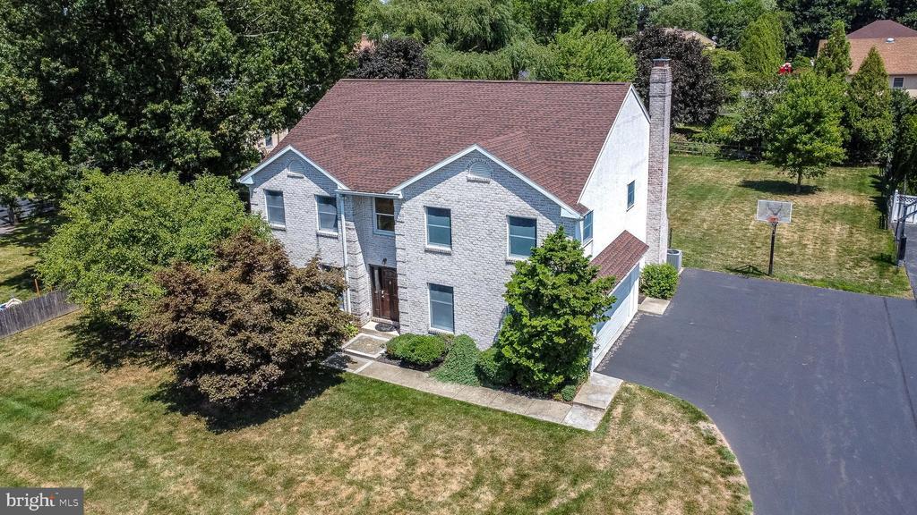 For sale in Blue Bell Estates, a white brick fronted, Sparango built 4-bedroom, 2.5 bath colonial home with 3182 square feet of living space on a private flat lot of .62 acres. Stepping in through the front door into the foyer you will find newer hard wood flooring that runs through nearly all of the 1st and 2nd levels of the home. Also complimenting the entire home is the ease and convenience of recessed lighting. From the foyer is the living room which connects to the very generously sized dining room with chair rail and a bay window that will be perfect for holiday dinners and entertaining in your new home. Next is the gourmet cooks kitchen updated in 2017 with a tiled floor and beautifully patterned stone countertops with plenty of storage in the 42 inch cabinets above with LED lights underneath, complimented by all stainless steel appliances. For a stovetop, you have a gas-fueled 36-inch cooktop with 6 burners and 2 large storage drawers underneath, pot filler, and a stylish stainless steel exhaust hood. A corner sink gives a view outside, though a kitchen window, and the counters are accented by a tiled backsplash. Wall oven with a warming drawer and microwave should suit any cook, and there is also a side-by-side refrigerator/freezer and separate wine/beer refrigerator. The stone counter offers casual dining, tea, or coffee at the countertop while still having ample space for sitting down at a kitchen table in the eat-in area of the kitchen. Here there are also sliders leading to a paver patio. The kitchen opens up from a half wall into the comfortable family room with built-in shelving and a brick-backed fireplace. The family room also has a ceiling fan and nook/bonus closet. From here is a space perfect for an office or large mudroom that has outside access directly to the driveway. The 1st floor powder room has a new vanity. Up the stairs to the bedrooms, all hardwood again hallway and the 4 bedrooms. First is the large master bedroom with vaulted ceiling with two ceiling fans. Within this vast bedroom is an owners walk-in closet that has had the laundry re-located into it, complete with over head cabinets. No lugging laundry down the stairs here! The en-suite features a newer double vanity, shower-tub, whirlpool, and skylight. The 3 secondary bedrooms are all very generously sized – all with ceiling fans. One of the secondary bedrooms has custom closet shelves and lighted with access switch from the outside. The 2nd level is finishes with the hall bath w new vanity. Going all the way down to the lower level is the basement, of which the majority is finished with tile floors (approx 800 sq feet of finished space). The perfect space for a home entertainment center, secondary family room, or use your own interpretation! There is also some un-finished space left over, which is an ideal storage area. The IKEA storage drawers and 3 IKEA cupboards are being included with the home. The two car garage with heat supply in garage (one vent) is accessed from within the home too. Out back is the paver patio perfect for relaxing on your favorite style outdoor furnishings, entertaining, or even al-fresco dining. And the vast level back yard is the perfect space for pets to roam, kids to play or practice sports, or if you wish to – add a pool to create your own backyard oasis. Or you could even explore adding an addition for an expansive in-law suite. Covering your new home is newer roof (2017). And don’t worry about power failures from a blizzard or tropical storm, there is a Generac Full house generator (2019). Other recent updates include a whole house water filtration system (2017) and dual sump pumps (2022). Outdoor drainage system installed around perimeter of the lot (2019). Living here you will be close to the turnpike, blue route, Rt 309, other major roadways, plentiful retail and grocery shopping, dining, entertainment, and so much more. All while being located within the sought-after Wissahickon School District.