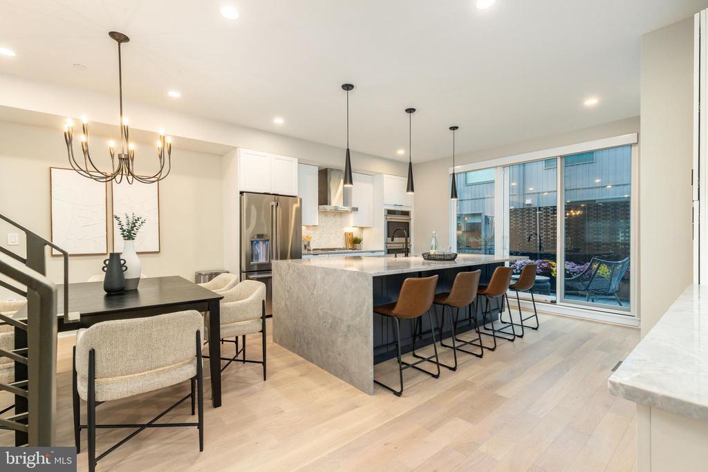 Luxury townhome with two car garage parking. This extra wide modern townhome at the former site of the Frankford Chocolate Factory present a unique urban experience in close proximity to Rittenhouse, major transportation routes, universities, and hospitals. Nearly 3,300 square feet of living space, custom designed finish selections, and fantastic skyline views. Go up the front steps into the expansive living room with 15+ high ceilings and an open floor plan concept that leads you into the dining and kitchen area. The oversized dining area features a convenient half bathroom and kitchen. The kitchen features an oversized center island, quartz countertops, tile backsplash, stainless steel Cafe appliances that include drawer microwave, cooktop, double oven, and range hood. Exit the back of the kitchen to the rear deck that extends 8 feet off the rear wall: perfect for entertaining guests, outdoor grilling, and dining under the stars! Upstairs you will find two large bedrooms with large closets and a shared full bathroom. This floor is also equipped with a laundry room with cabinets for storage. Continue to the top floor and enter the primary bedroom suite with an oversized walk-in closet. The primary bathroom features a freestanding soaking tub, oversized shower room of seamless glass, a private lavatory, a double vanity and radiant heated floors. Before you exit to the roof deck, there is a wet bar and sink conveniently located to entertain your guests as well as a half bathroom. The roof deck is complete with green and features spectacular panoramic views of the Philadelphia skyline. Special attention has been given to the rooftop design to maximize the usable space while enjoying the benefits of having a green roof. There is additional living space in the finished basement, perfect as an office, workout/fitness room, or additional sitting area. If those features aren't enough, pull into the private driveway of this development and into your two car garage. These homes have a Ring camera system and have dual-zoned energy-efficient HVAC systems with NEST thermostats. Metal handrails, recessed lighting throughout, and PELLA windows. Conveniently located near ALDI, CVS, Target, Sprouts Market, Whole Foods and Pet Smart. 8 Years remaining on the Tax Abatement.